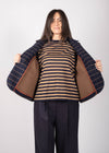Giacca Lori 100% lana doppiata dal taglio morbido e avvolgente con colletto alla francese e tre tasche a toppa sul davanti. Rifiniture interne a contrasto con sbieco di cotone.