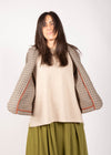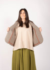 La giacca Ingrid è l’evoluzione della nostra storica Ninetta. Abbiamo ampliato la linea a trapezio, chiuso gli spacchi laterali, arrotondato e smussato le punte frontali, aggiungendo un piccolo collo a lancia per addolcire e contenere la figura. È stata mantenuta la caratteristica manica con paramontura sul polsino. La giacca è arricchita internamente da rifiniture con sbieco in puro cotone.