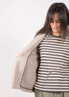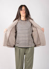 Giacca Lori 80% lana e 20% alpaca dal taglio morbido e avvolgente con colletto alla francese e tre tasche a toppa sul davanti. Rifiniture interne a contrasto con sbieco di cotone.
