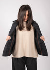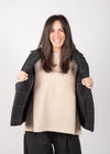 Giacca Lori in lana dal taglio morbido e avvolgente con colletto alla francese e tre tasche a toppa sul davanti. Rifiniture interne a contrasto con sbieco di cotone.