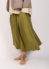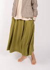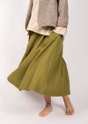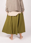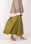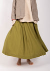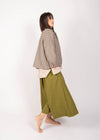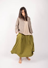 Nata dall’evoluzione dell’iconica gonna Mariasole, la Maria Luna è una gonna morbida dal taglio a trapezio, con due pieghe sul davanti e due sul retro che ne valorizzano il movimento. Le tasche laterali aggiungono un dettaglio pratico e conferiscono al capo un tocco casual. La cintura è rifinita internamente con uno sbieco in cotone, per una cura dei dettagli discreta ma impeccabile.