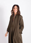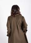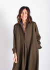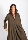 L'abito Viola 100% frescolana nasce dall'evoluzione del Violante, alleggerito da due pieghe al posto di quattro per accompagnare il movimento. È realizzato con raffinate tasche laterali, faldone sul retro, sbieco color blu e un collo simmetrico in sintonia con gli stessi volumi dell’originale. Il tessuto conferisce una perfetta architettura all'abito.