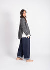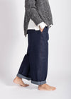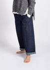 Comfort ed eleganza, i Pantaloni Fiordaliso in denim scuro sono ralizzati con taglio gamba larga dall'estetica contemporanea, presentano un elastico in vita e tasche a contrasto dal taglio classico. Un capo versatile indossato anche con doppio risvolto, per uno stile informale e ricercato. A seconda della taglia scelta cambia la sua interpretazione.
