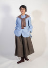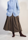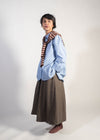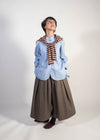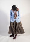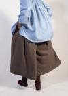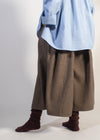 Pantagonna in pied de poule asfalto e caramello, realizzata in pura lana. Presenta un elastico in vita per un comfort ottimale e piegoni cuciti sia sul davanti che sul retro, che donano struttura e movimento. Le tasche in tessuto a contrasto aggiungono un tocco distintivo, mentre la cintura interna è rifinita con sbieco di cotone per una cura dei dettagli impeccabile.