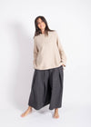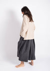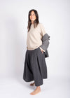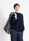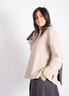 Maglia in pregiato mix di lana (70%) e cashmere (30%), caratterizzata da un taglio a trapezio che dona morbidezza e movimento alla silhouette. Il girocollo è leggermente a cratere per incorniciare il collo e gli spacchi laterali conferiscono un’eleganza disinvolta, mentre i polsini a camicia aggiungono un raffinato dettaglio sartoriale. Un capo versatile e confortevole, perfetto per uno stile essenziale ma sofisticato.
