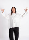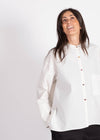 Camicia over in popeline di cotone dal taglio trapezio, più lunga ai lati. Le maniche con paramontura permettono di creare un delicato risvolto, mentre il colletto piccolo e arrotondato dona un tocco rétro. Una tasca applicata sul petto completa il design. Taglia unica.