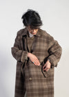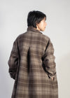 Le tasche asimmetriche rompono l’equilibrio in modo armonioso, dialogando con il colletto strutturato e il doppio taglio sul retro, pensato per accompagnare il movimento. Sul dietro, la bugia aggiunge volume e costruzione, creando una linea architettonica, forte e decisa, che rende il cappotto ancora più teatrale e distintivo.