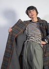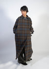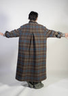 Zuzzurro nasce dall’evoluzione e dal prolungamento del cappotto Gaspare, portandone l’anima verso una dimensione ancora più scenografica e imponente. La lunghezza accentua la presenza del capo, mentre il tessuto doppiato in pura lana ne esalta struttura, calore e profondità.