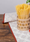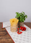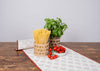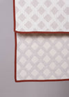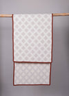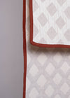 Un runner con i rombi a contrasto e lo sbieco in puro cotone color tegola. Dritto e rovescio non esistono. Pensato per arricchire la tua mise en place con stile e leggerezza. Come centrotavola, da solo o sovrapposto a una tovaglia per donare profondità e movimento.